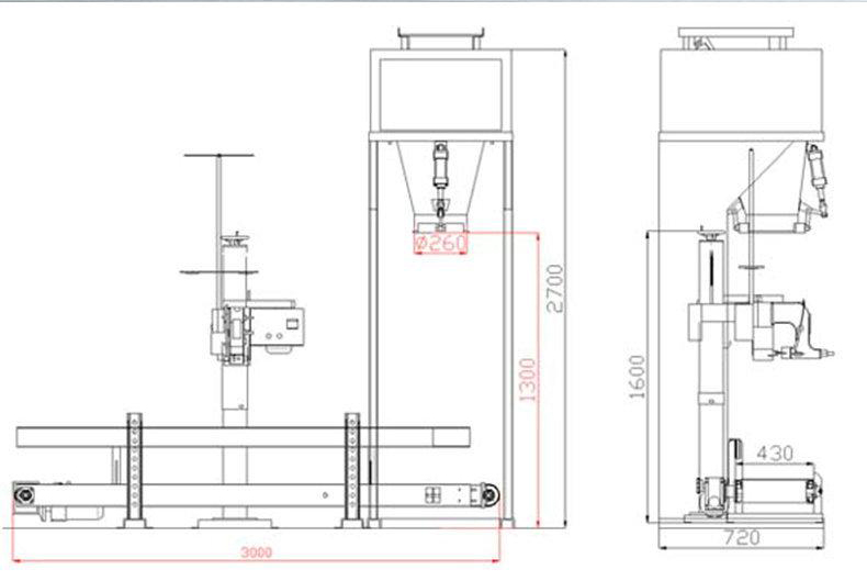 敞口袋包裝機除人工套袋外,快慢加料、定量、夾袋、卸袋全部采用自動控制。儀表上實現(xiàn)快、慢加料量、控制參數(shù)的設(shè)置和超差報警顯示;重量累計,并可配備自動打印輸出。該設(shè)備具有稱量速度快、準(zhǔn)確度高、穩(wěn)定性好、操作簡便等特點。根據(jù)物料性質(zhì),黏度大的物料可以設(shè)計錐形給料斗,帶破拱轉(zhuǎn)軸與垂直螺旋加料機構(gòu)實現(xiàn)粗細快慢加料。